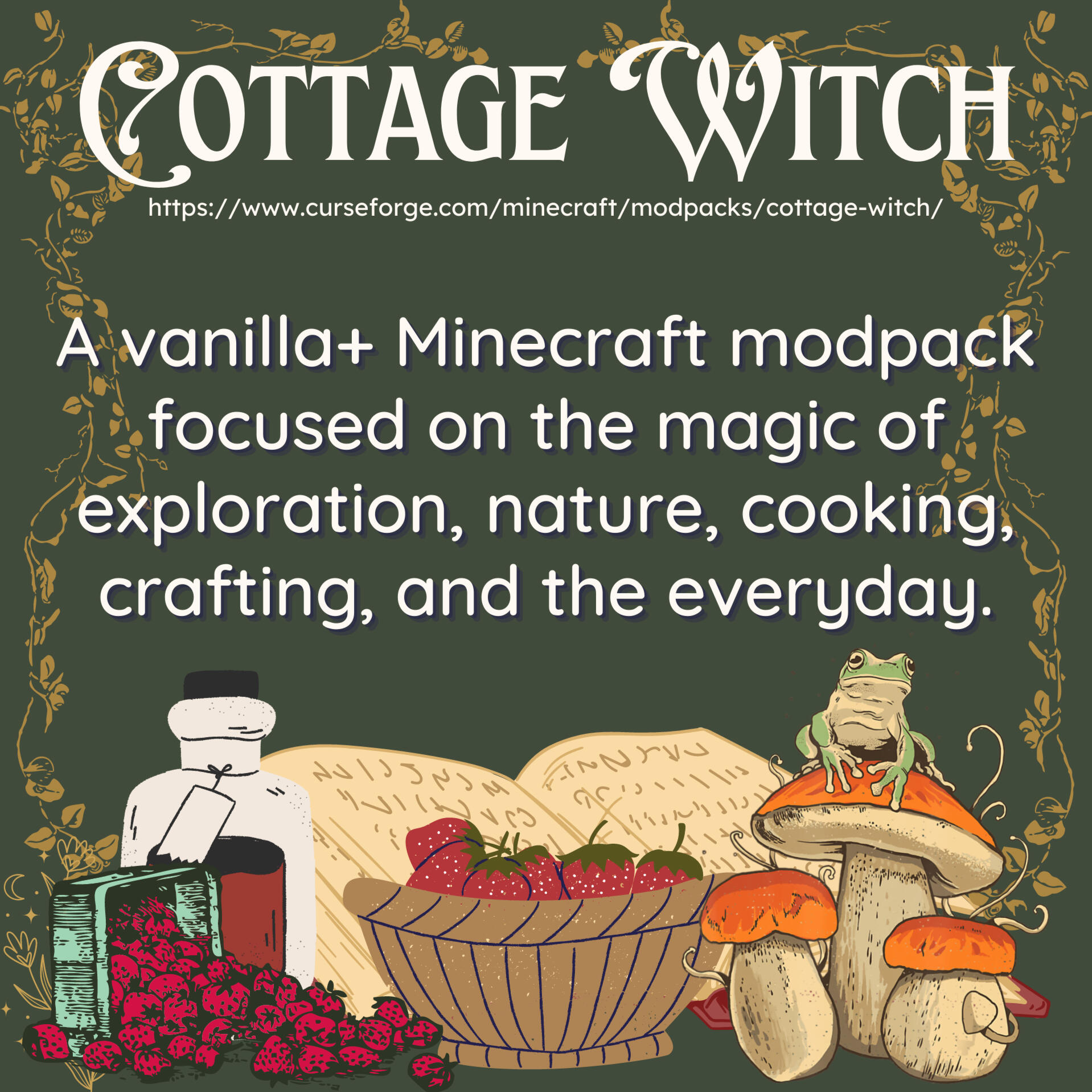 Welcome to Cottage Witch, a cozy Minecraft modpack that's perfect for players looking to explore the magical side of Minecraft. Created by a disabled artist named Katu in October of 2022, this pack is designed to emphasize the real-world magic of homemaking and nature. Cottage Witch runs on version 1.19.2 of Minecraft and requires Forge to operate. With mods like Hexerei, Ars Nouveau, and Create (because engineering is a form of magic!), players can immerse themselves in a world of domestic witchery and discover new ways to automate and enhance their gameplay. Join us on this magical journey and experience the wonder of Cottage Witch for yourself!